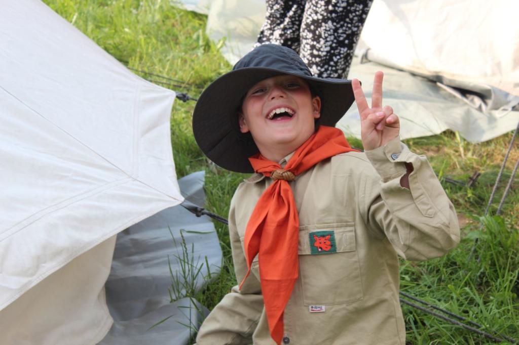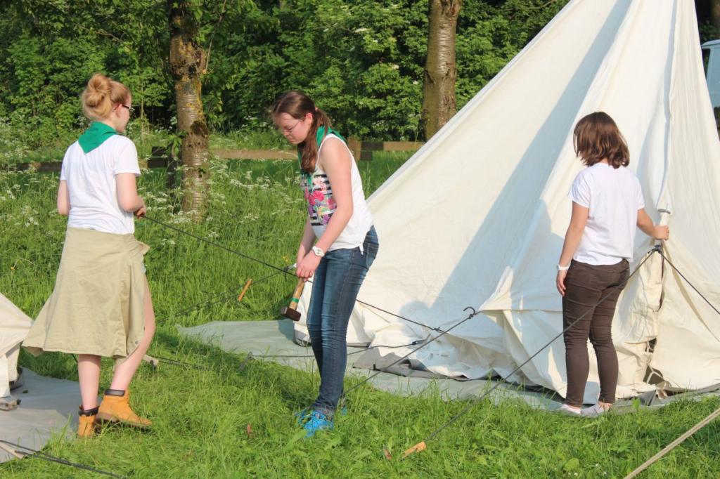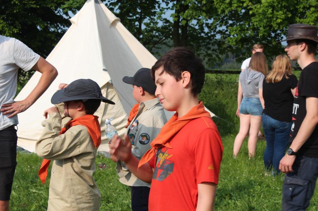 Freitag: Wir treffen uns am zentralen Abfahrtsort mit allen Teilnehmern und starten gut gelaunt ins Wochenende. Aus Wiemelhausen sind 8 Wölflinge, 11 Juffis, 12, Pfadis und 3 Rover mit dabei. Betreut werden die Kids von 13 Leitern. Die Busfahrt verläuft einem Freitagnachmittag entsprechend aber schließlich kommen wir bei strahlendem Sonnenschein am Lagerplatz an. Die Zelte sind mehr oder weniger schnell aufgebaut, bei den Wös hat sich das Üben in der Gruppenstunde gelohnt. Doch leider weicht die Sonne am Abend dunklen Wolken und die ersten Regentropfen treffen uns. Die Eröffnungsfeier findet trotzdem statt und wir erfahren endlich wer Timmy ist: Timmy ist ein Rover, der bei einem Ausflug in ein Wurmloch springt und damit durch die Zeit reist. Leider weiß niemand wohin. Das ganze Wochenende steht deshalb unter dem Motto “Wo ist Timmy?” und wir werden viele Abenteuer in verschiedenen Welten erleben.
