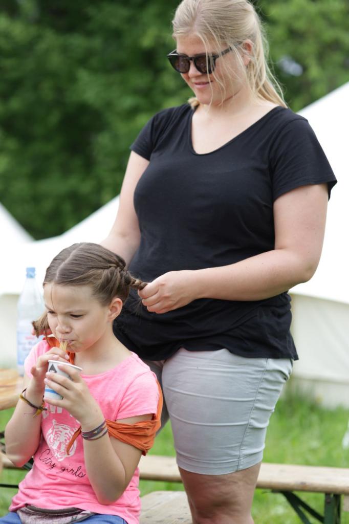 Anschließend machen wir noch eine riesige Lagerfeuerrunde mit dem ganzen Dorf. Wir leben wieder mit unseren Freuden aus Querenburg zusammen, was erneut hervorragend funktioniert. Es gibt Stockbrot und keine Bettgehzeiten. Unser Gesang zieht schließlich noch viele Besucher aus den anderen Dörfern an und viele müssen mit wenig Schlaf in der Nacht auskommen, ein sehr schöner Abend!