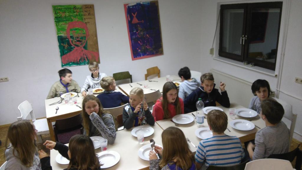 Nachdem am Freitagabend alles ausgepackt war, die Zimmer aufgeteilt und bezogen waren, begann das Programm. Neben einigen Pipi Langstümpfen, einem Pirat und dem berühmten Roboter R2D2, schlichen sich unter anderem auch ein Polizist und sogar der Gründer der Pfadfinderbewegung ein.